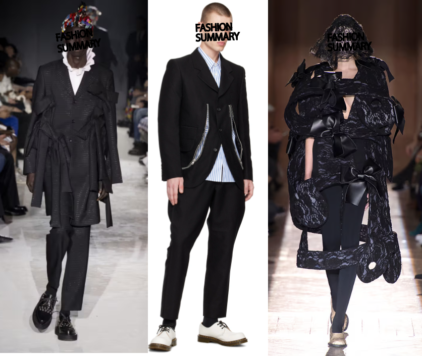- 象徴的特徴:解体・再構築、黒の多用、不規則なシルエット、ストリートとの融合